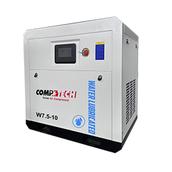 COMPTECH Oil-Free (Water Lubricant) ปั๊มลมสกรูที่ใช้น้ำขับสกรูแทนน้ำมัน ทำให้มีประสิทธิภาพในการทำลมสูง มีอุณภูมิต่ำ เพระาใช้น้ำขับเคลื่อนระบบ และทำให้ไม่มีน้ำมันเจือปนในกระบวนการผลิต ซึ่งเหมาะสำหรับงานที่ต้องการลมที่สะอาดและปราศจากน้ำมันเจือปน